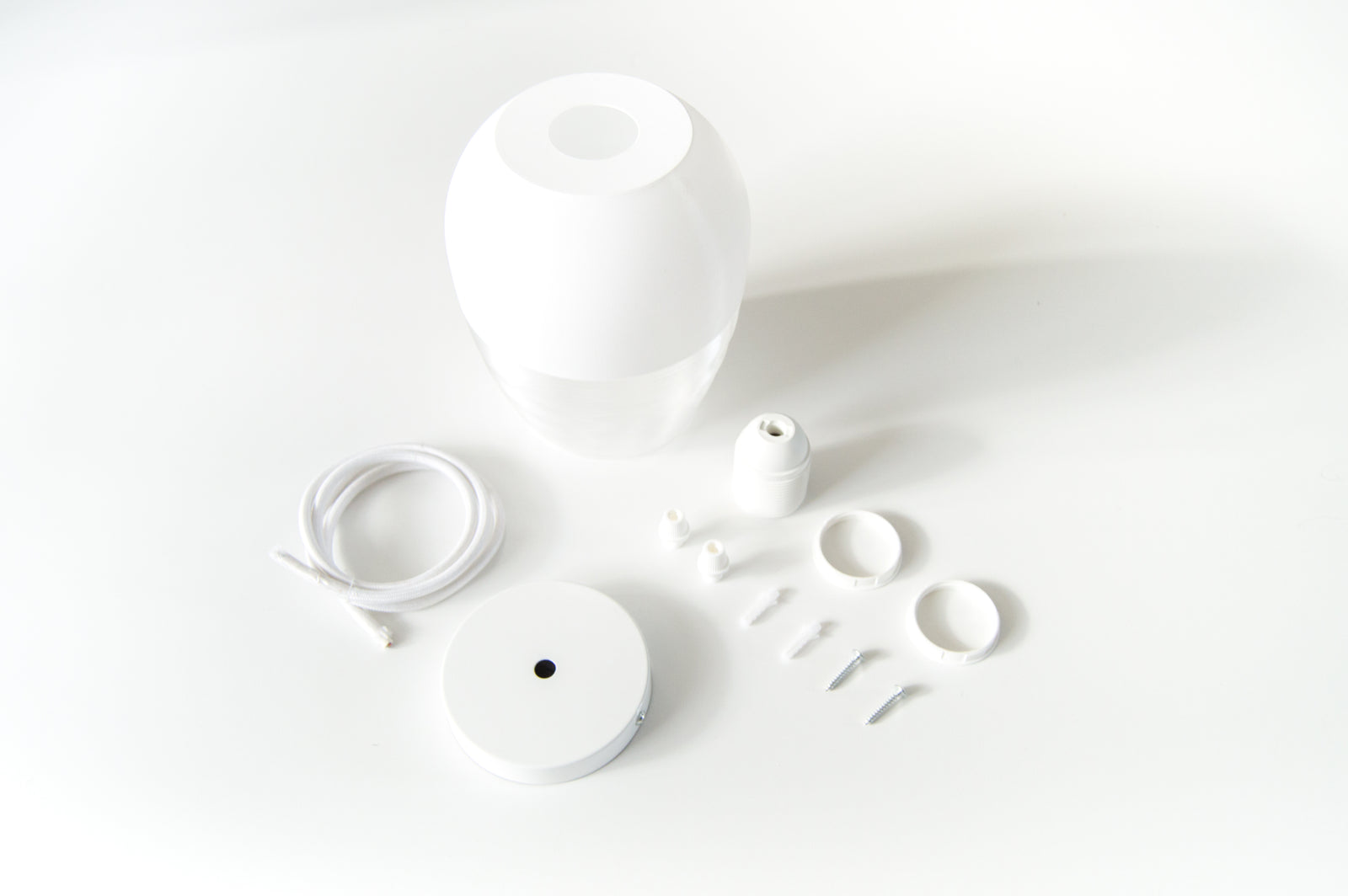 Lamp socket, white colored cable, ceiling rose and screws for installation are included. Please note that this lampshade can only be used in combination with a LED light bulb, which is NOT included.