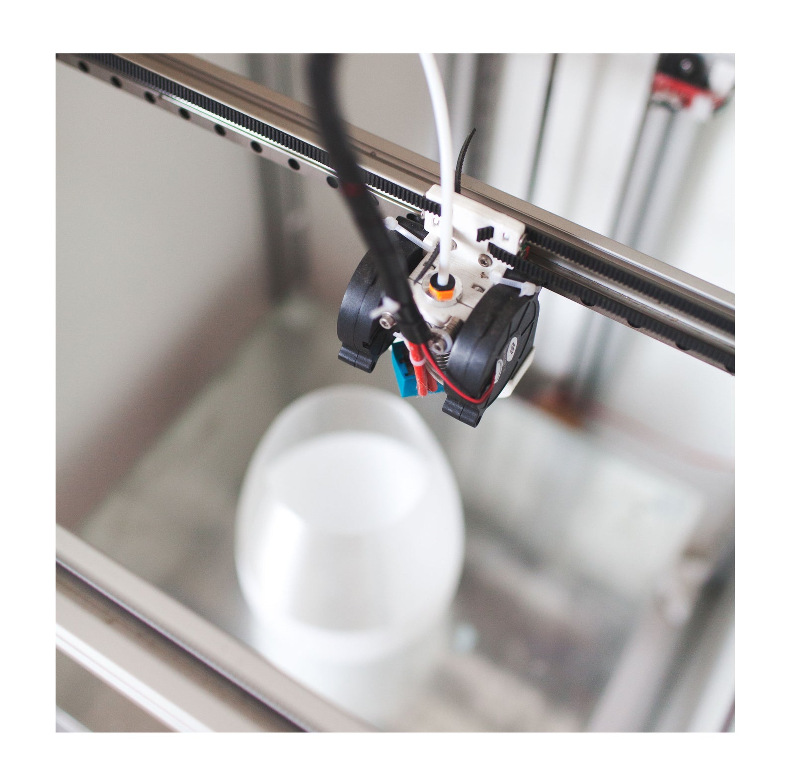 Each lampshade is printed with the 3D printer that we built ourselves and takes about 4 hours to print. For this we’ve used PLA filament, a biodegradable plastic, which is obtained from agricultural crops such as corn and sugar cane.