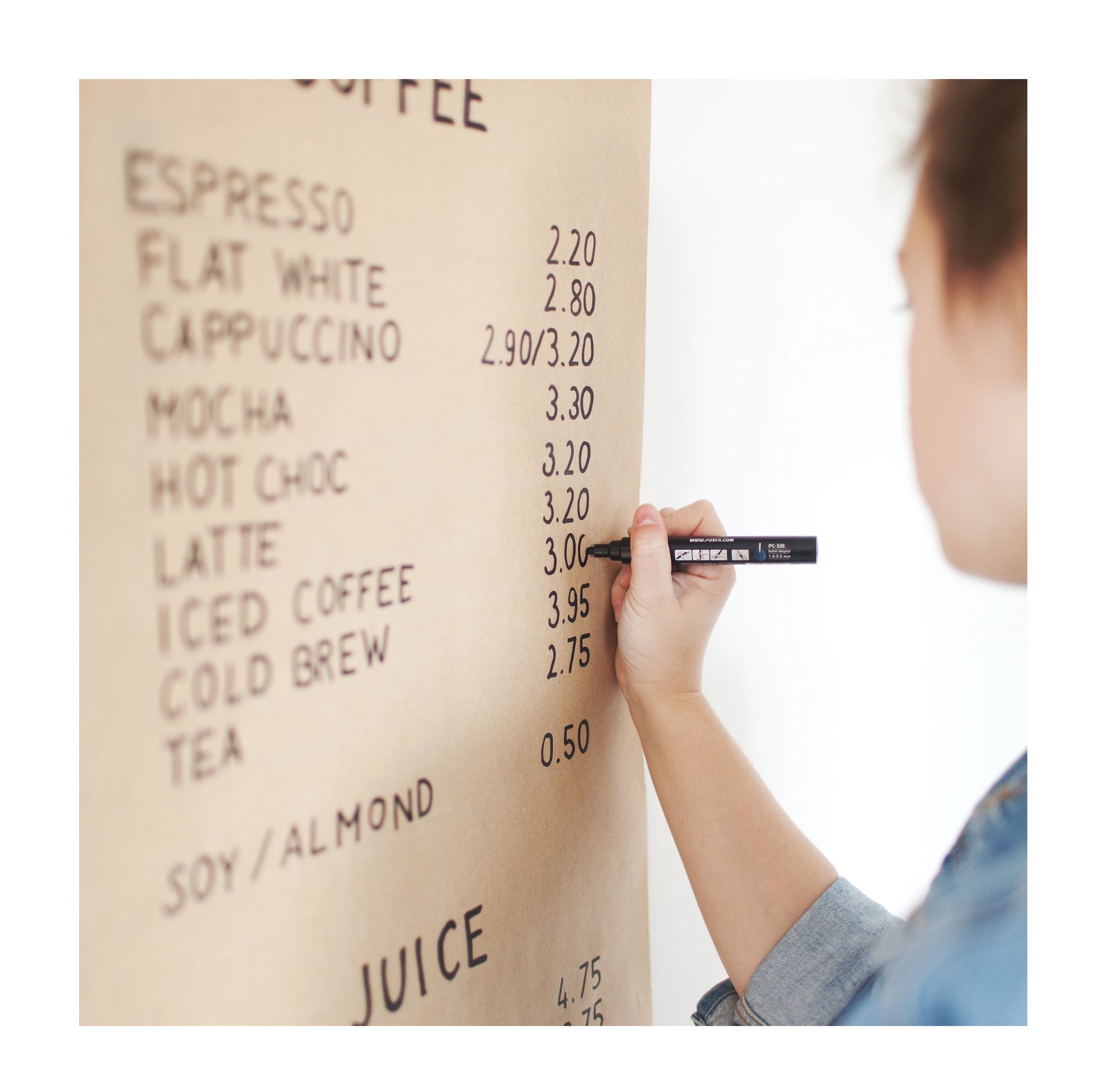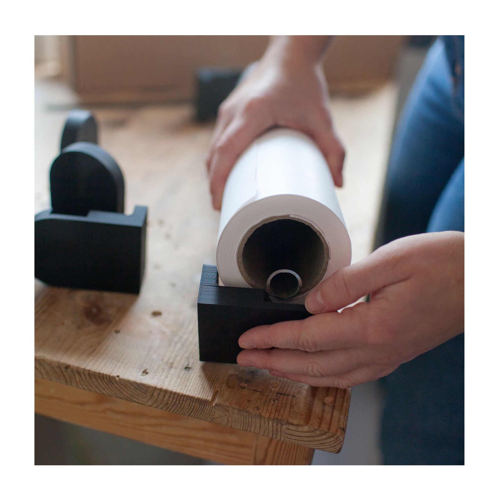 The Paper Roller is a great addition to any space. Hang it in the kitchen, (home)office or use it as a menu holder in your café. Choose the color combination that fits your needs (white/black bracket and white/kraft paper).