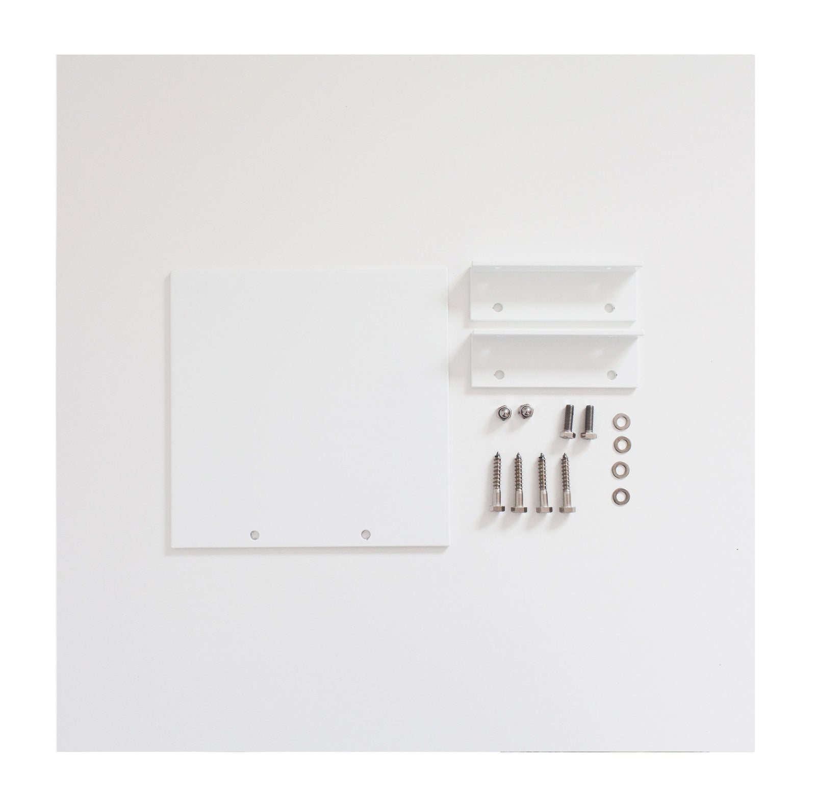 Made from 5mm aluminum with two layers of powder coating to ensure longevity in any weather condition. Can be mounted on lots of different surfaces, screws are provided by us. Available in two sizes (250x250mm or 400x400mm) and colors (black or white).